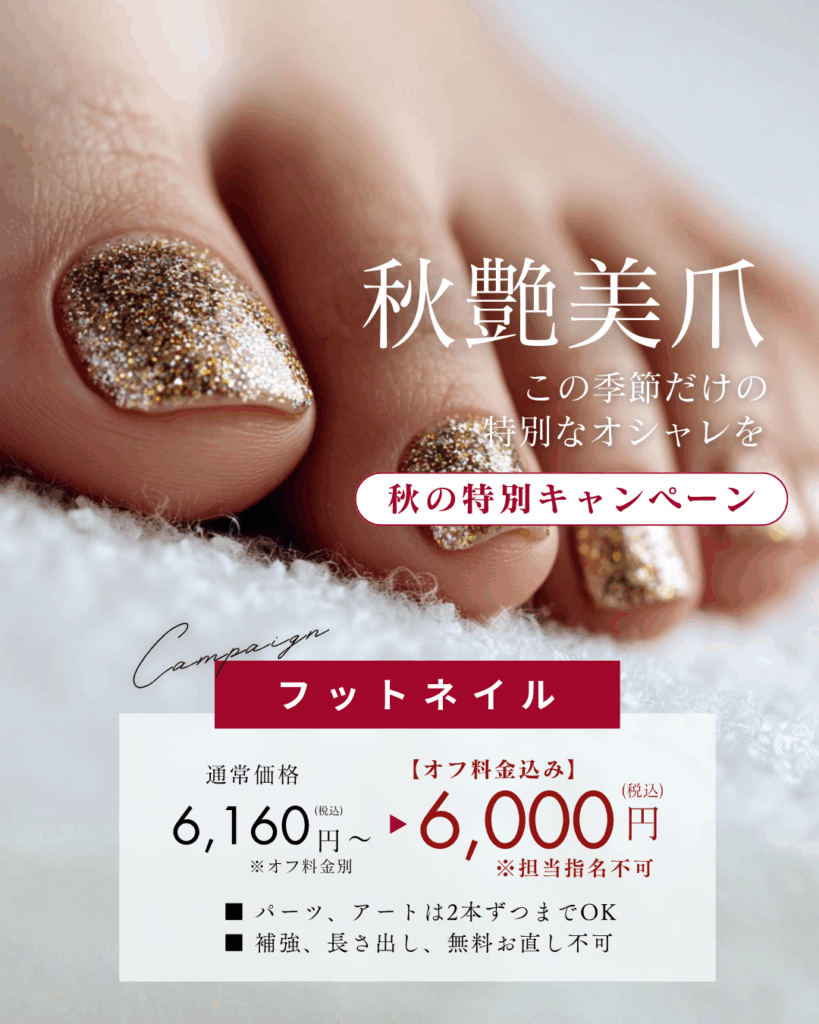 《担当指名不可》季節カラーのフットネイルで気分UP◎